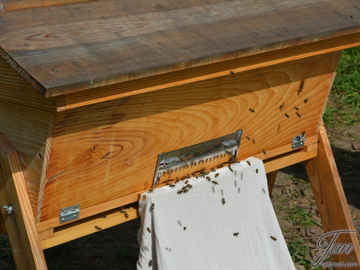 J’ai transformé une ruche kényane pour n’avoir plus qu’un seul format compatible avec les autres sur le rucher. Après expérience, je me rend compte que à mon échelle ça ne va pas être viable de tester différents formats de ruches. Néanmoins, les ruches horizontales sont très intéressantes, j’ai donc adapté celle-ci pour pouvoir utiliser les mêmes cadres partout. Avec deux séparateurs et vingt-et-un cadres, elle est pensée pour accueillir deux colonies distinctes. Parfaitement adaptée pour effectuer des divisions, c’est une ruche prévue pour la reproduction. Elle se veut pratique et confortable aussi bien pour l’apiculteur que pour les abeilles. Construction réalisée artisanalement pour ne pas dire artistiquement avec des bouts de ruches, du bois récupérés et une bonne dose d’enthousiasme pour compenser l’inexpérience en matière de menuiserie millimétrique imposée pour une ruche. Elle est loin d’être parfaite mais je suis quand même assez satisfait du résultat et je me réjouis de la tester à la saison prochaine.